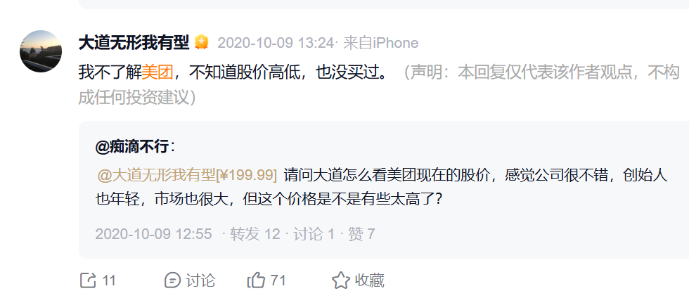 比较让我出乎意料的是,段永平不仅没有持有美团,而且居然一直没有关注到这家公司。2020年的时候,有网友在雪球问他“请问大道怎么看美团现在的股价,感觉公司很不错”,段永平回答说:我不了解美团,不知道股价高低,也没买过。这是他雪球上唯一一次提及美团。