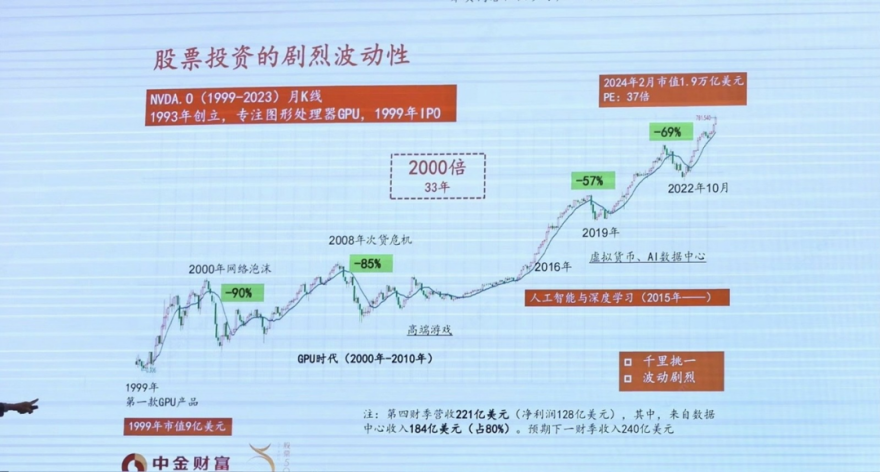 如上图,试想想,如果有幸在1999年就买入英伟达公司股票,自己能历经两次跌去90%而不动摇一直坚持持有吗?在之后几轮的十倍上涨中又能守得住,实现胜利大逃亡吗?