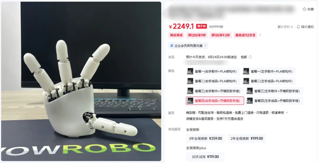 我们翻了翻购物平台,发现大部分机械手集中在几千到几万的价位,最便宜的可能只要游戏里两三发 648,最贵的能把小米 SU7 带回家。