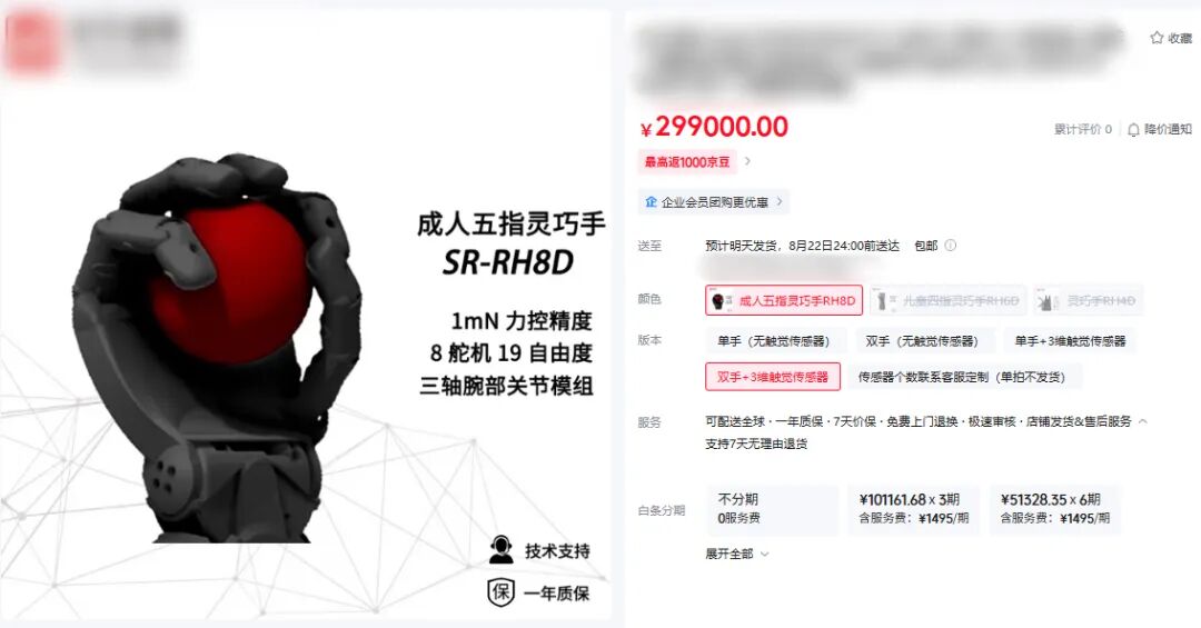 而在和王老师聊天的过程中,我们发现在不同需求场景下,定价差异确实很大。比如在纯科研中,一只手七八十万也是很常见的。