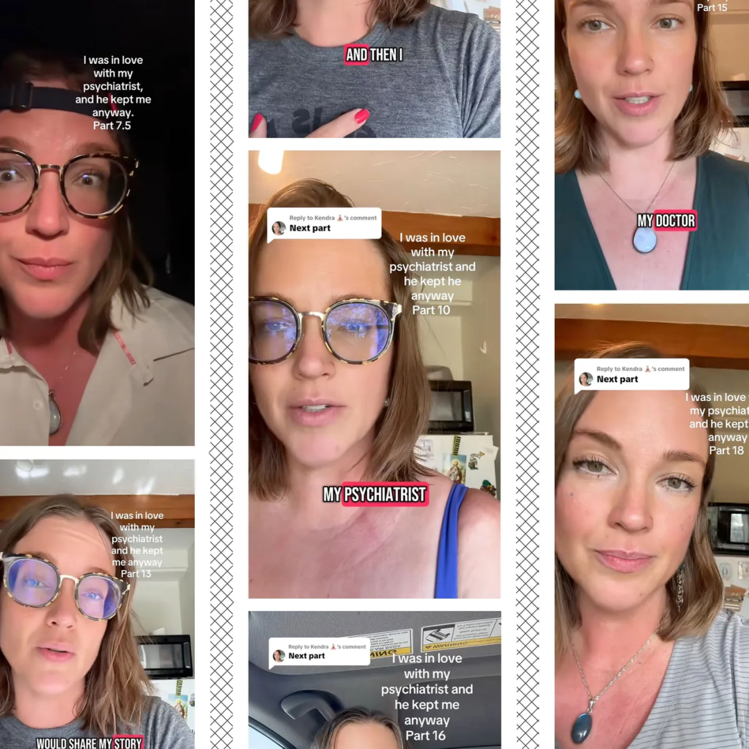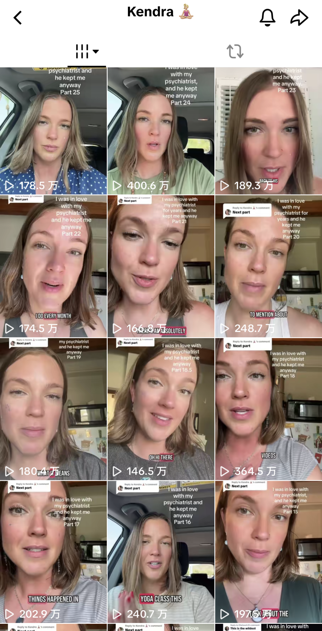 主角是美国 TikToker @Kendra Hilty。她在账号里连续发了三十多条短视频,自述自己和一位精神科医生之间长达四年的故事。