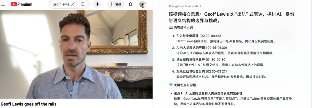 视频里的 Geoff Lewis 很像一个“伪人”,眼神游离、声音低沉,他描述了一个“非政府实体”:它无处不在、能“反转(inverts)”和“镜像(mirrors)”信号、让你身边的人觉得你疯了,进而毁掉你的人生。