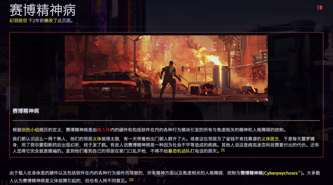 在游戏《赛博朋克 2077》里,夜之城里的人因身体与机械过度融合,常常患上“赛博精神病(Cyberpsychosis)”:神经系统和认知边界崩溃,最终迷失自我。