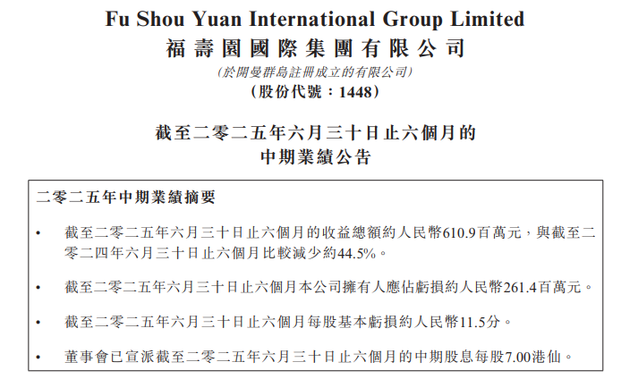 3.福寿园国际集团有限公司截至2025年6月30日止六个月的中期业绩报告。2025.8