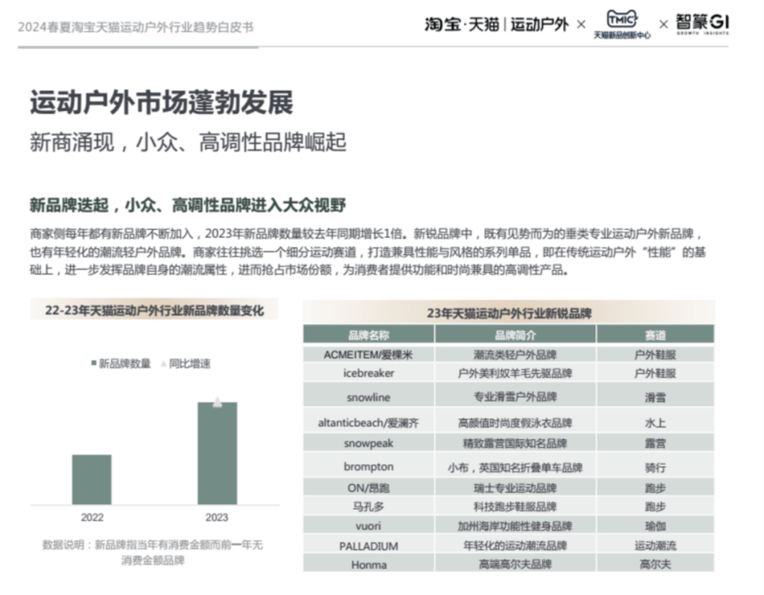 据CBNData统计,淘宝天猫平台2024年户外运动行业销售额TOP30有近半数品牌的商品均价都有所上涨。