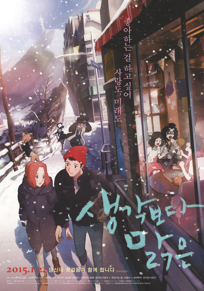 韩知媛在校期间便以短片《猫屎咖啡》(코피루왁)一鸣惊人,2015年推出了将四部个人短片集合而成的长片电影《比想象更清澈》(생각보다 맑은),她在如此短时间内就实现了大部分同僚都很难做到的事,放在韩国动画界被誉为“天才”也不为过。然而,非儿童向的韩国动画毫无市场,她没有能够大显身手的舞台,此后便只能一边接商用动画工作赚钱,一边制作自己的独立动画。