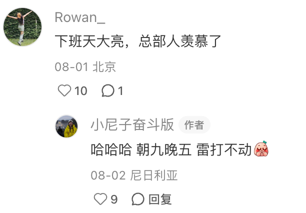 大厂赛道的博主千千万,但外派非洲的那些人永远都是活力满满热情四射,看不到一点被狗屁工作腌入味的感觉。