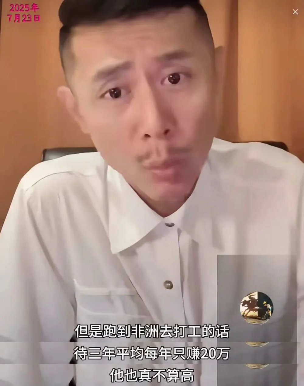 大冰老师在一次直播中曾经接到一位正考虑要不要接受非洲外派工作的大学生的求助,他直言不讳地说:跑到非洲去打工,年薪20万真的不算高。