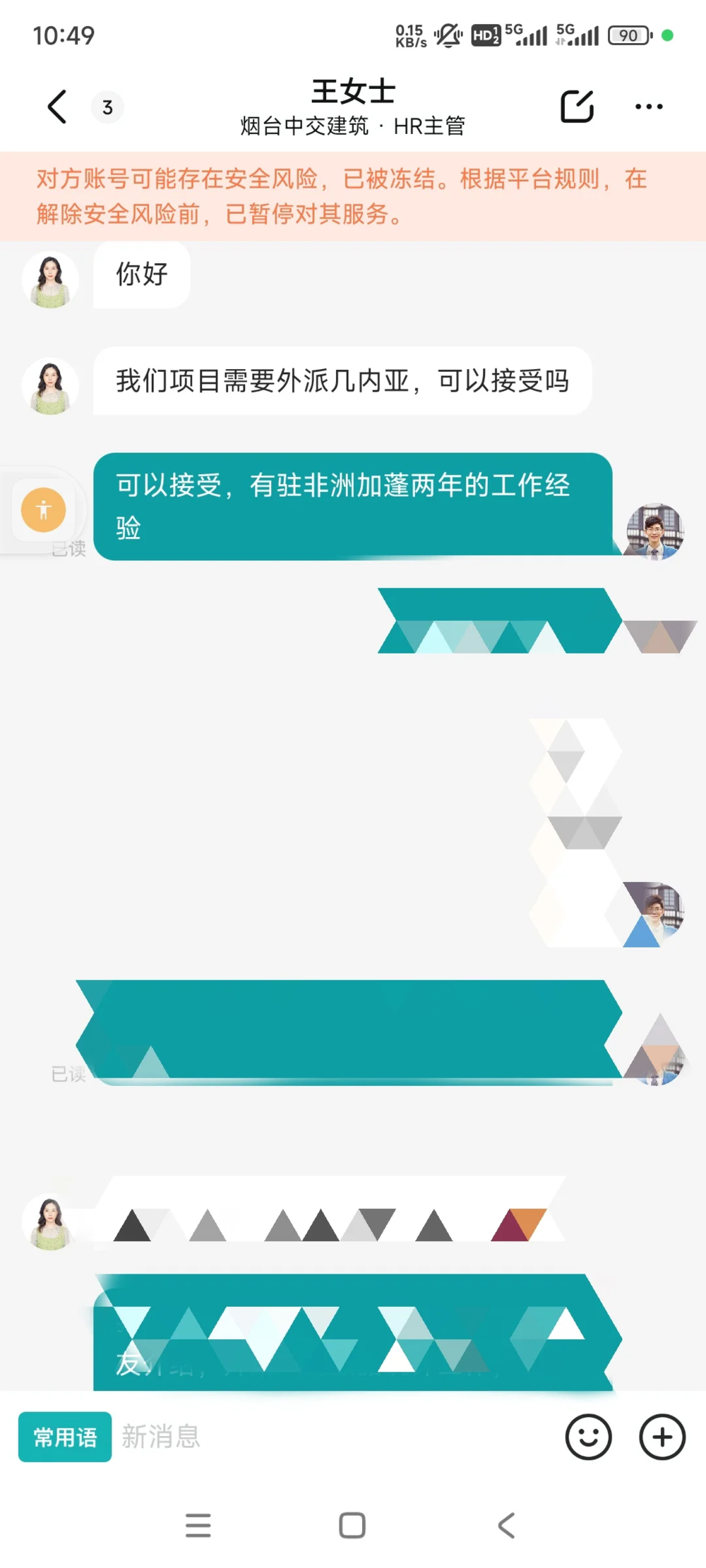 有同学在正规的招聘平台上找到的外派工作,聊了没几句就提到了入职押金,刚挂了电话,就接到了反诈中心打来的诈骗提醒。