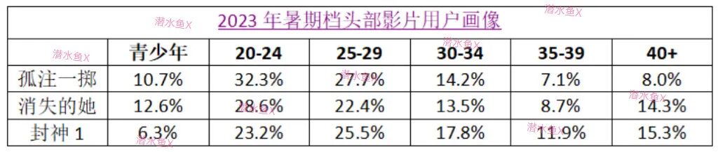 需要注意的是,年轻人的流失不是突然发生的。2023年暑期档,尽管票房、观影人次均表现不俗,但从用户画像看,青少年、大学生的占比已经开始出现下滑,25到34岁观众的占比有了明显提升。由此我们可以得出第二个初步推断:年轻观众抛弃电影院不是偶然,而是一个长期的趋势。