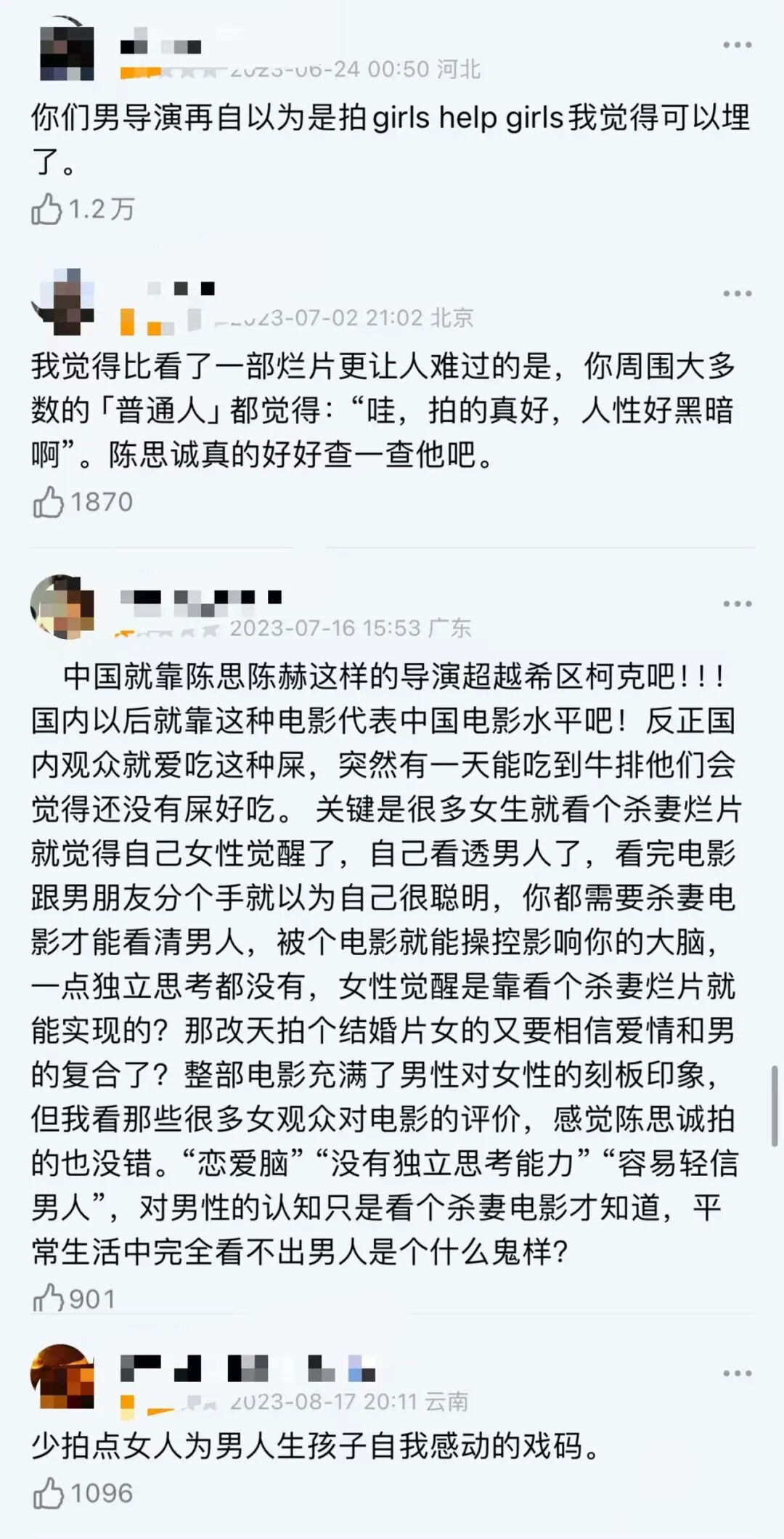 可文艺作品一旦切中了某种能广泛传播的情绪,结果就截然不同了。一个典型的例子就是陈思诚监制的《消失的她》,电影上映初期,在豆瓣上遭到了大量讨伐,被影迷怒骂是陈思诚的男性意淫、有着用女性故事也藏不住的爹味。然而,随着抖音上关于渣男、电影激发恐婚情绪等讨论的增多,影片开始出圈,上映一周后反而迎来了票房的逆跌,单日票房突破2亿,并最终靠着女性观众的情绪加持卖到了35亿。