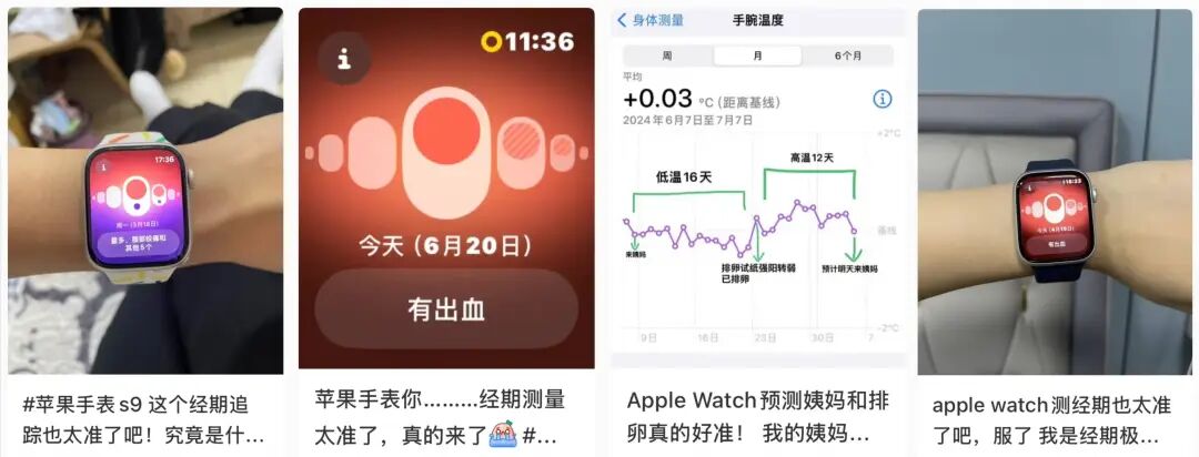 在社交媒体上,如果你有留意,会发现关于Apple Watch的话题下,有不少网友分享它对经期的规律总结和预测相当准确。
