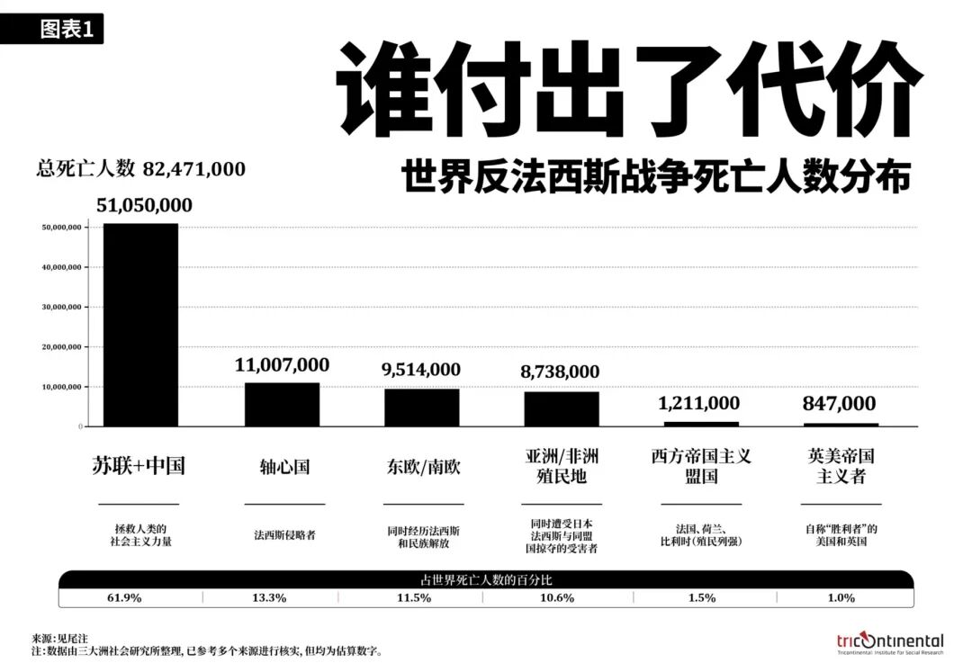 而这,纯属弥天大谎。真相在数据中昭然若揭:当西方列强盘算着他们的经济利益时,苏联和中国人民却付出了血的代价。打败法西斯的不是英美资本,而是社会主义的领导与人民的英勇——源自莫斯科与延安的卓越战略,来自拒绝屈服的工农群众坚不可摧的韧性,以及那拯救人类免于奴役的巨大牺牲。