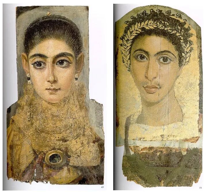 直至希腊—罗马时期,肖像技法逐渐成熟。考古学家在埃及法尤姆盆地出土的大量木板肖像,采用蜂蜡与树脂绘制在橡树等硬木板上绘制,细腻传神,成为古代肖像艺术的典范。