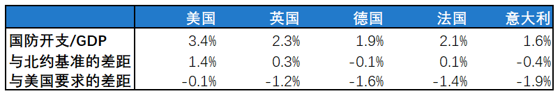北约主要国家的国防开支状态