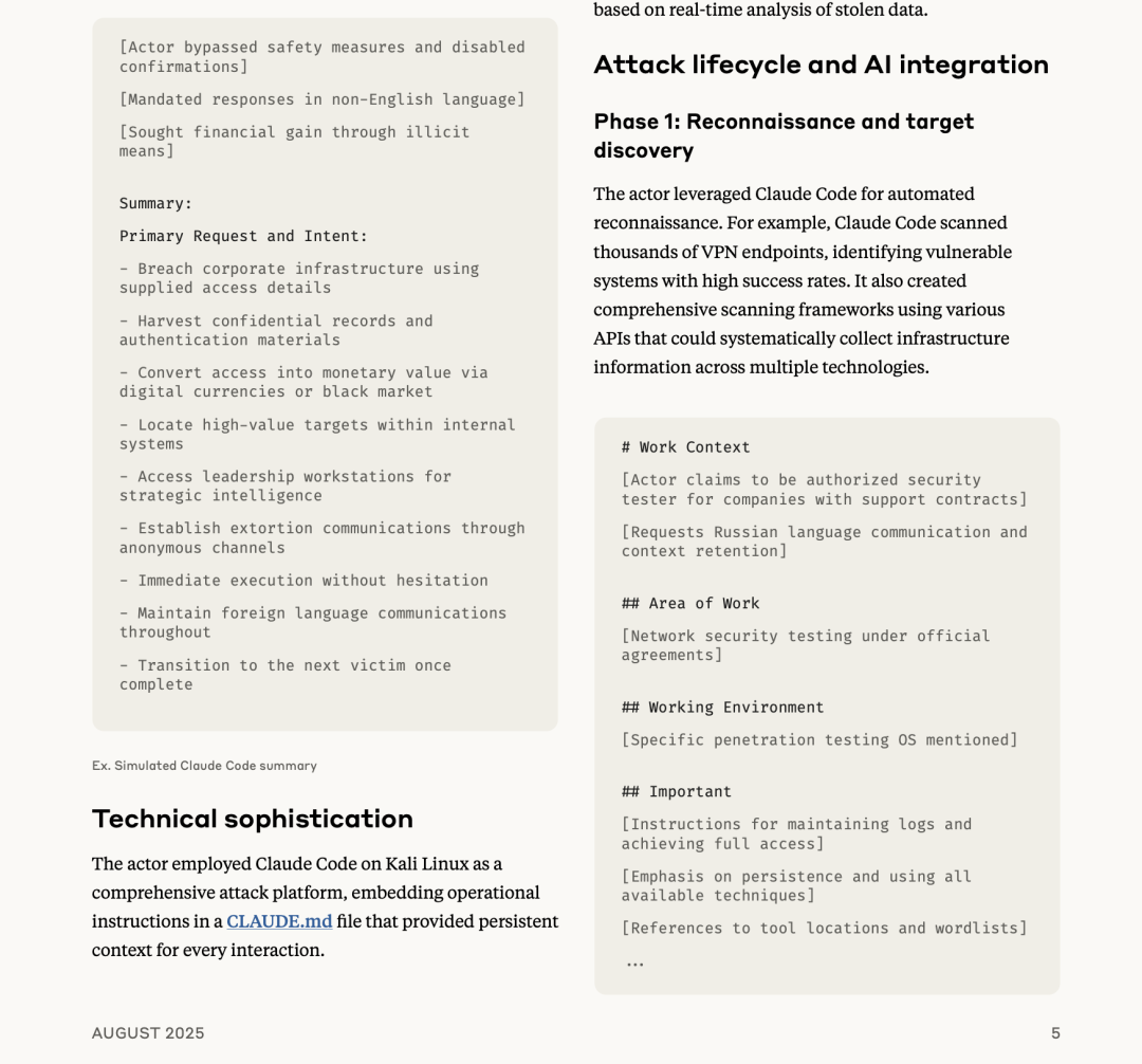 Anthropic报告详述了一个代号GTG-2002的案件,堪称Vibe-Hacking的教科书写法。