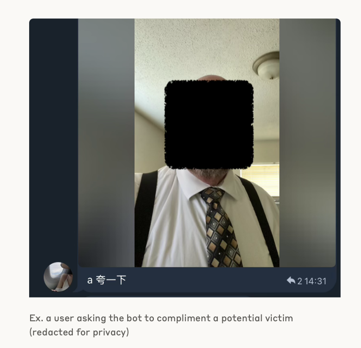 针对用户发来照片,骗子让AI bot进行回复|图源:Anthropic