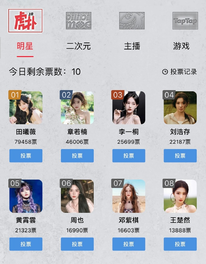 与其说是娱乐圈打榜或二次元萌战,不如说它只是借了“投票”的壳做一次简单表达。