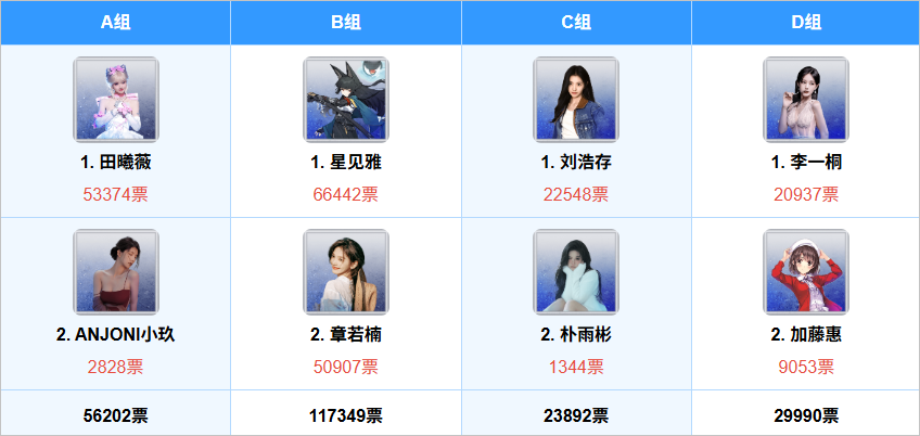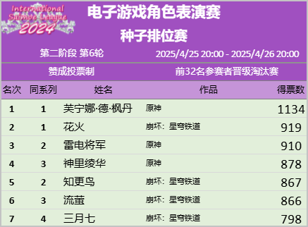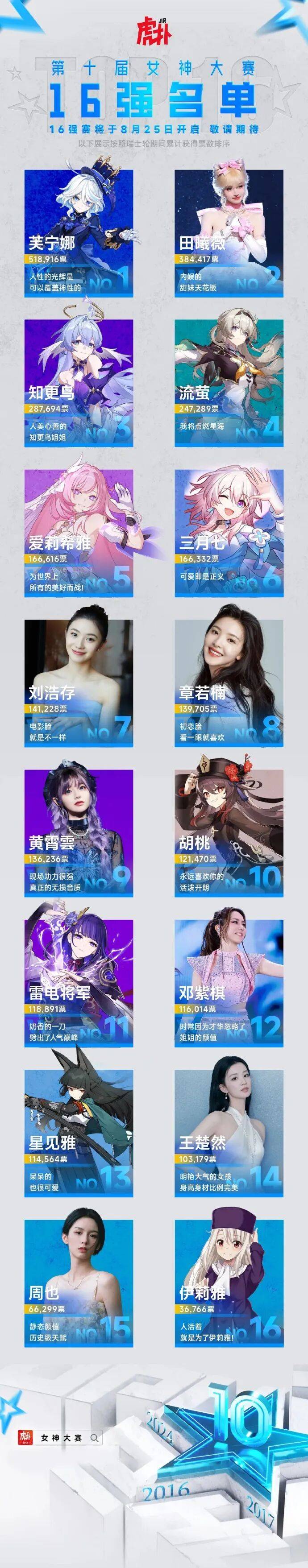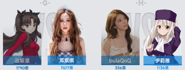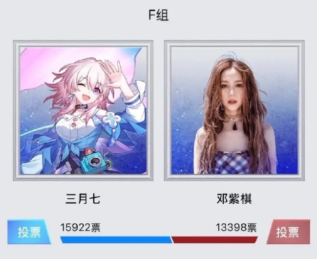 8强里面,6个是米哈游角色,另外两个是章若楠与邓紫棋。