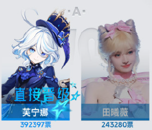 看票数就明白了,芙宁娜对上田曦薇那一轮,她一个人干到39万票,是决赛双方的票数总和还要再翻个倍的程度。