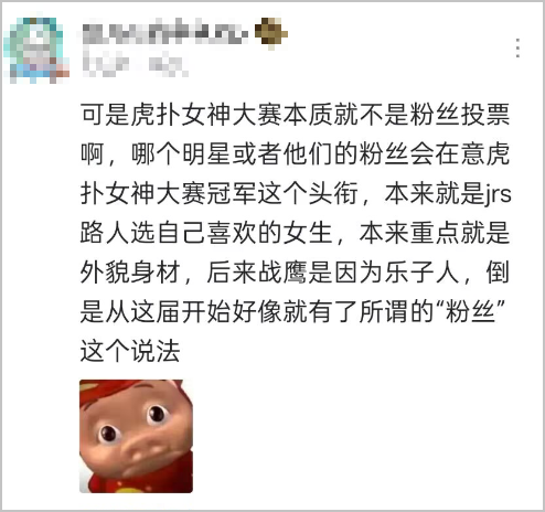 之后随着“女神大赛”的影响力渐广,这个活动成了虎扑的招牌,被官方接手。因为虎扑自身的平台特殊性,加上用户多是二三十岁的体育爱好者,平时看看剧但不太关心娱乐圈,“女神大赛”也就自然带上了“直男审美风向标”的噱头。