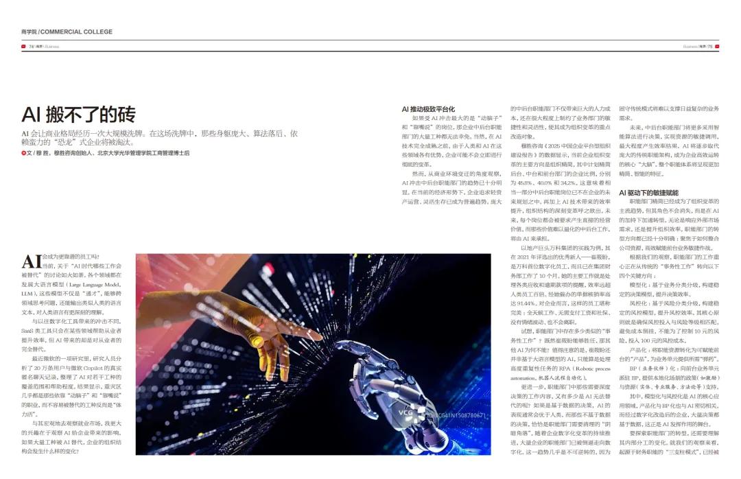 业务伙伴——既是使用AI的高手,也是AI使用体验的反馈者。他们从中后台进入了前台,可以说,是业务部门和中后台职能部门的连接器。这个部分由于是多分支,团队规模在三支柱中最大,当然,某个职能部门的AI越是成熟,赋能效率越高,BP团队的规模就越小。