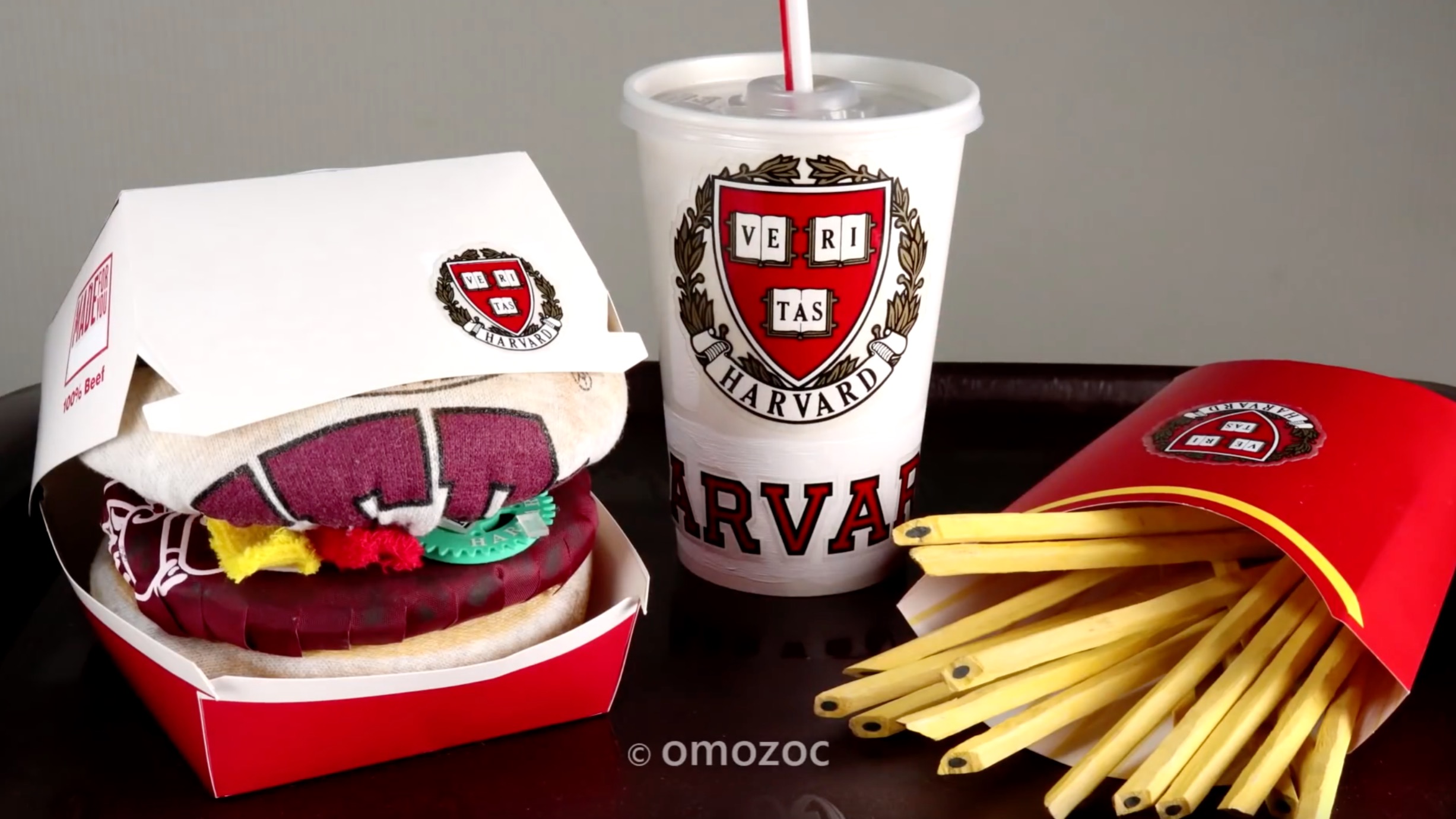因为不会算1-2,作者把自己的哈佛卫衣撕碎做成了汉堡胚,把哈佛尼龙包做成了汉堡肉饼,把铅笔制成了薯条,把笔盒切成洋葱碎,他把这些都吃了下去,然后……