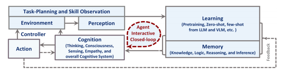 这正是大语言模型(LLM)和视觉语言模型(VLM)发挥核心作用的场域。它们为 Agent 提供了强大的世界知识、逻辑推理和上下文理解能力。认知模块负责解释感知到的信息,进行多步推理,并制定出实现目标的策略。