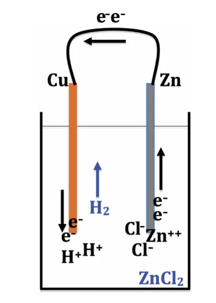 图4 沃氏实验的当代复现,(a)和(b)均为在盐酸(HCl)中使用锌丝和铜丝