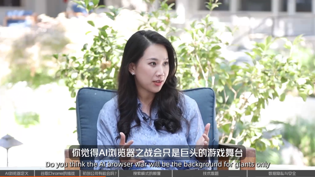 陈茜:你觉得浏览器之战会只是巨头的游戏舞台,还是初创公司也有机会?因为我们看到大语言模型(LLM)这场游戏已经完全是大玩家的天下了。