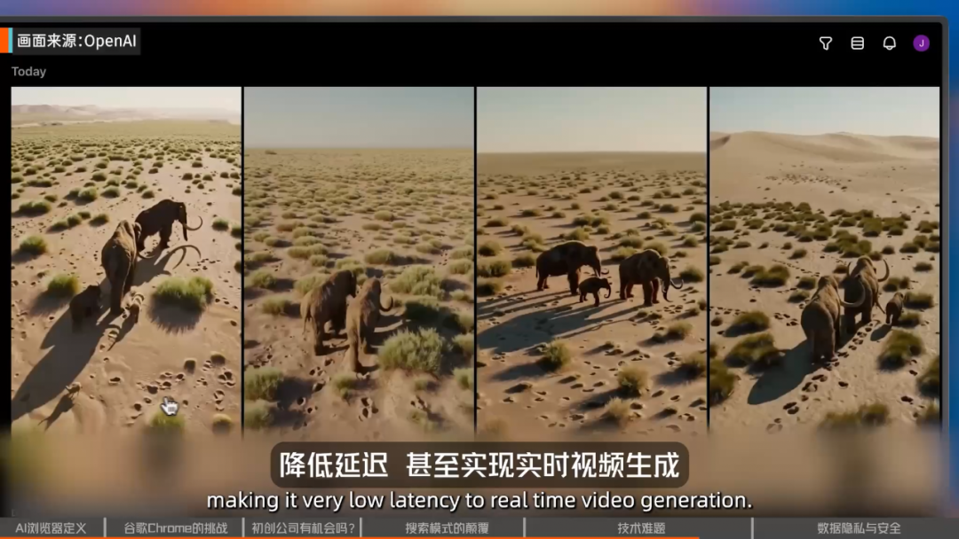 举个例子:如今整个浏览器的交互模式是,我打开一个网站,看到预先排版好的页面,上面有图片和文字。但未来也许AI会基于对我意图的理解,即时生成完整的结果,可能是视频、可能是图片,也可能是文字,完全为我量身定制。