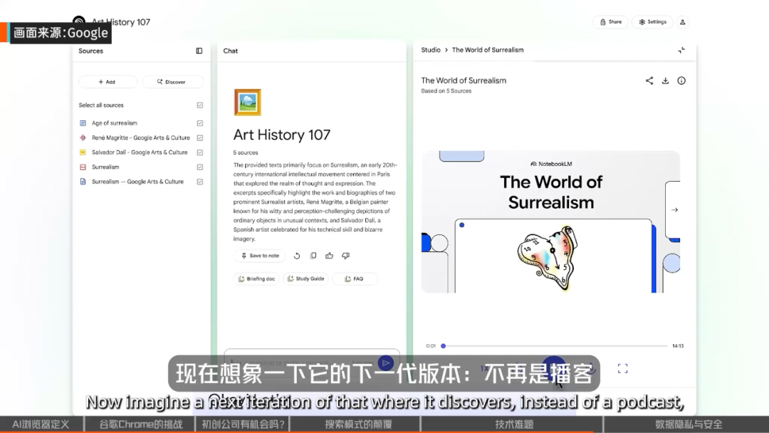 Guru Chahal:我见过最令人兴奋的一个演示就是Google的Notebook LM。我们平时都会读一些论文、博客或者新闻稿,如果把同一篇文章导入,它在你开车的时候就会自动生成一段播客供你收听。这是一个做得非常好的产品。