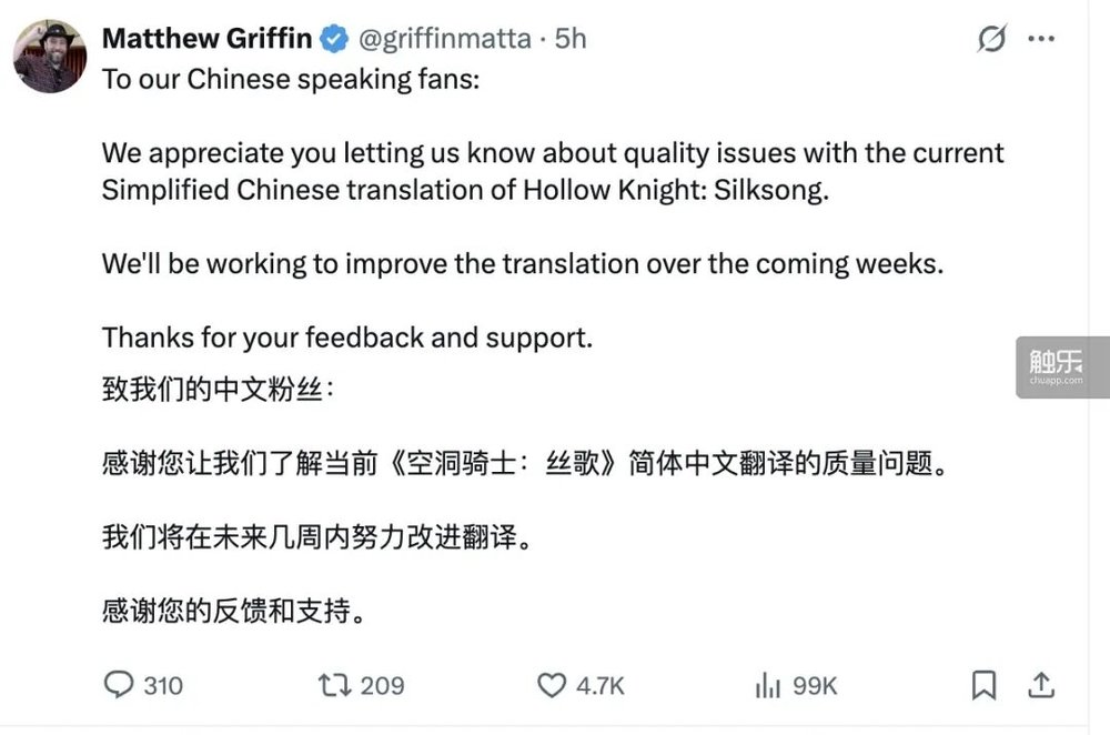 前天(9月4日),许多中文玩家在历经千辛万苦之后,终于买到了《空洞骑士:丝之歌》(下文简称《丝之歌》),结果却被游戏的简体中文汉化质量浇了一盆冷水。