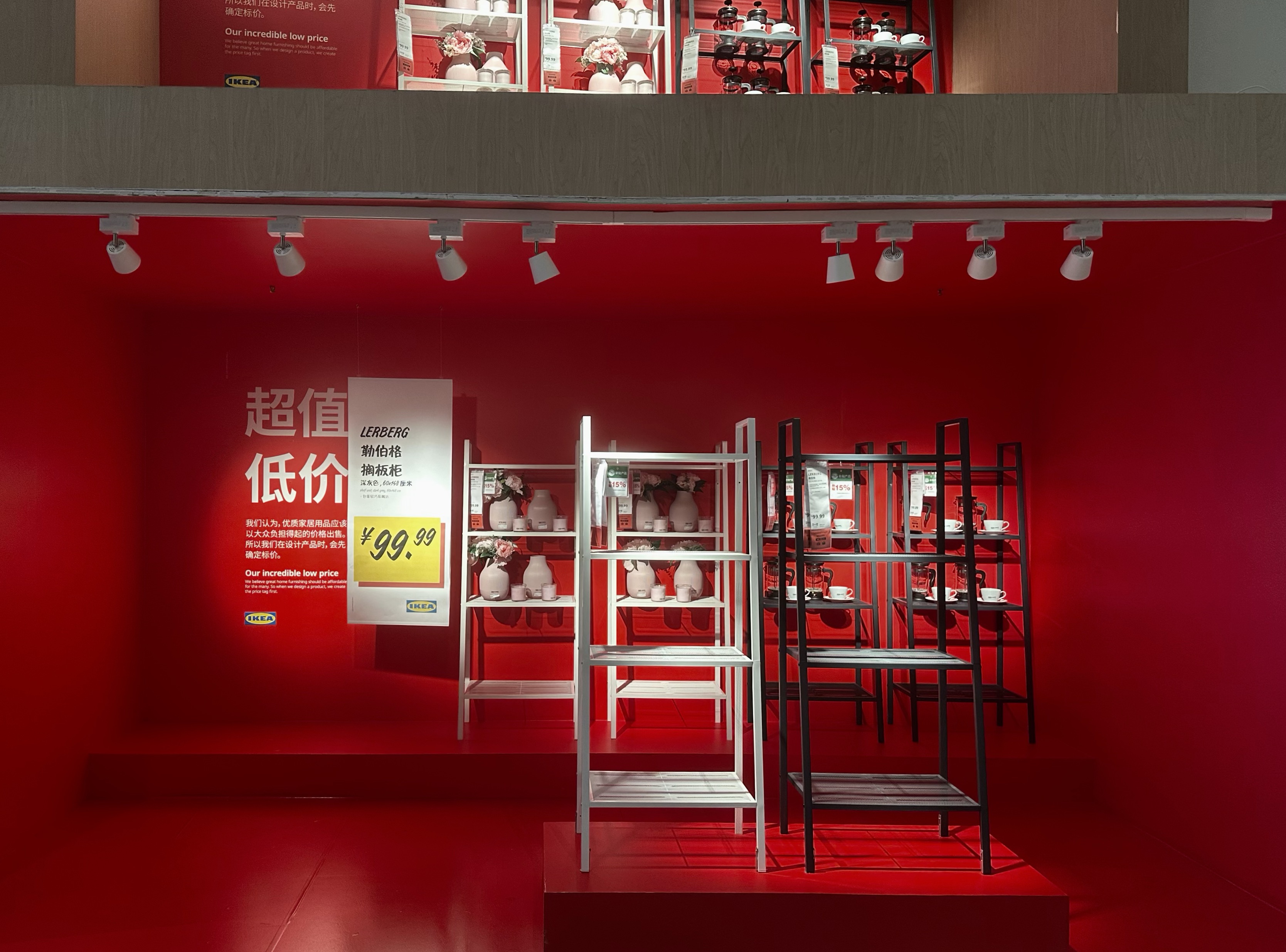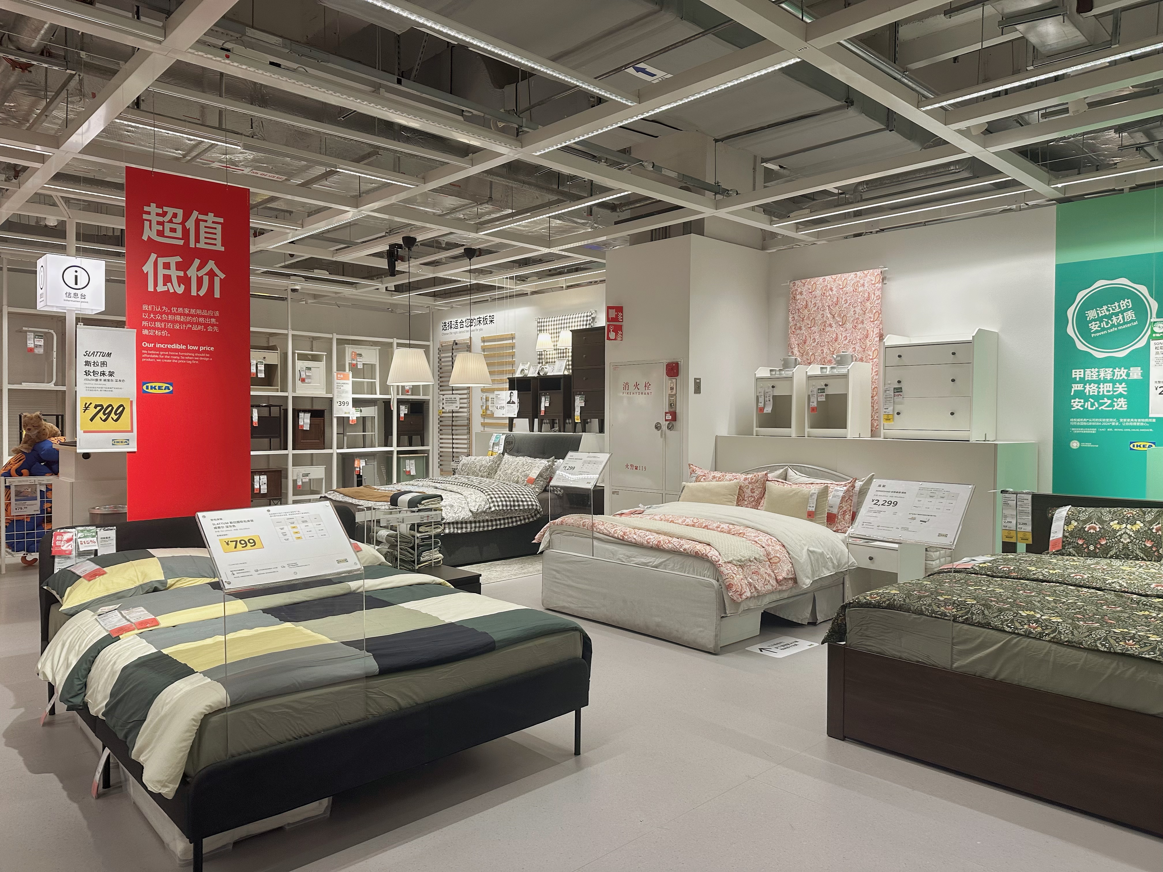 笔者来到宜家中国首店宜家徐汇商场门口,补贴30%类似的促销标牌随处可见。“超值低价”“限时特惠”等标牌也被置于店内。宜家的 “低价信号” 已经直白到不用刻意寻找。