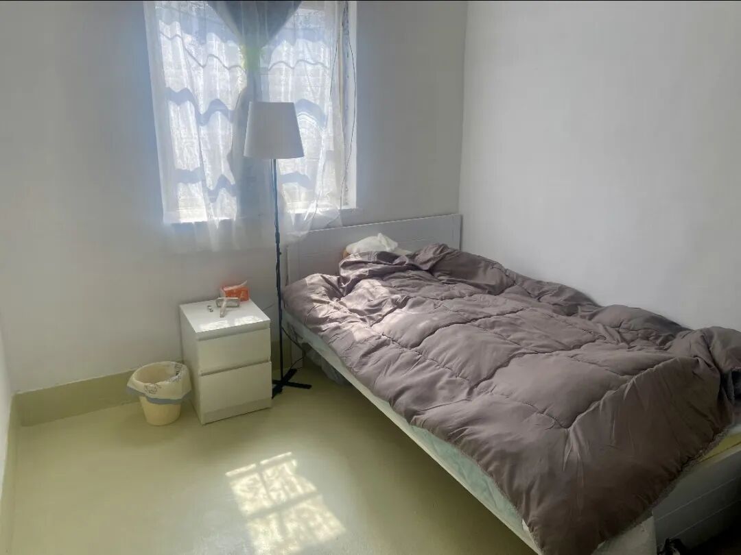 厨房、卫生间都在房子外部,和客厅、卧室隔了一条走廊,邻居回家需要穿过这条走廊。卧室房间里有两扇窗,其中一扇用砖块糊住了,因为它连通着邻居家的卧室。出于安全考虑,刚搬进去,April就给每个房间都买了密码锁。