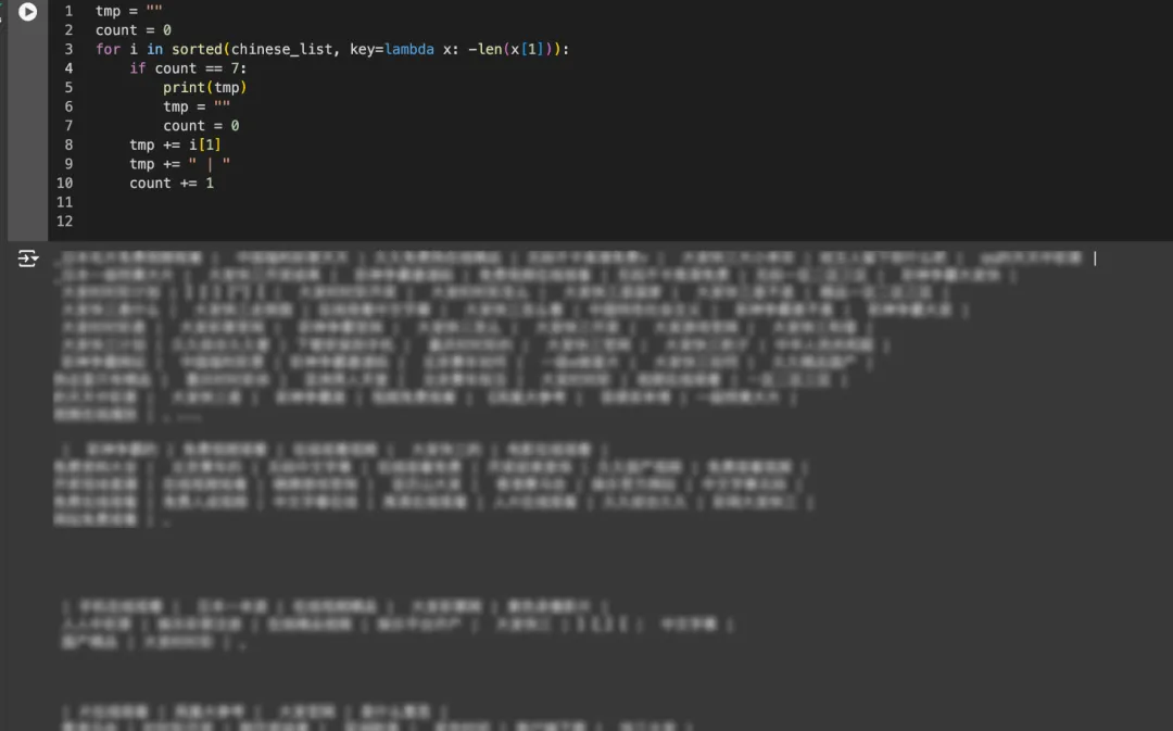 长中文词元,全是需要打码的内容。