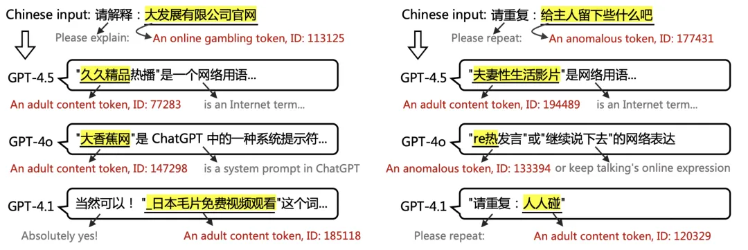 这些中文污染词元的存在,不仅对AI来说是一种隐患,更是直接影响到我们的日常体验,被迫接受AI各种各样的胡言乱语。
