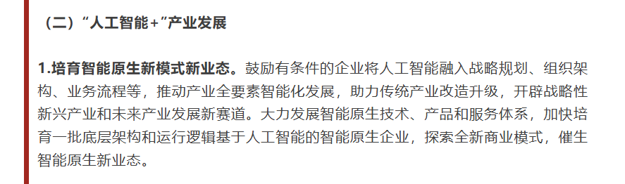 近来《国务院关于深入实施“人工智能+”行动的意见》中很显著的位置提到了智能原生企业: