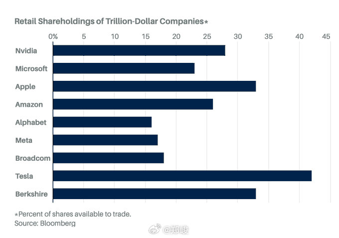 特斯拉的散户持股比例高达42%,是万亿美元市值俱乐部里最高的;相比之下,谷歌和Meta的散户持股比例甚至不到20%。这些散户大多是马斯克的坚定支持者,此前连续数次批准了对马斯克的天价薪酬,因为他们相信马斯克的宏伟愿景,可以实现炫目的业绩目标。
