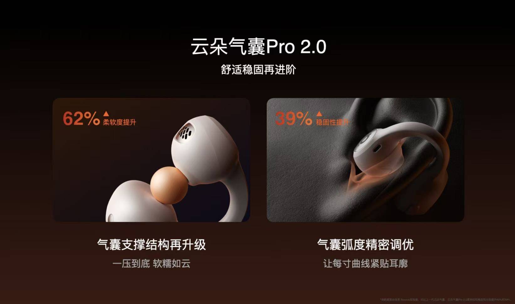 当然佩戴感受也很重要。倍思 Inspire XC1 采用“云朵气囊”结构设计:既能稳定贴合耳廓,又几乎感觉不到明显的压迫,云朵气囊专利技术在这款耳机上升级到了 Pro 2.0 版本,柔软度比上代提升 62%,这样的升级就是奔着“半永久”式的佩戴去的。同时它还很稳固,基于1万多组耳型数据调整的C形桥设计,让大耳小耳都能稳稳卡住。镍钛合金记忆丝经过上万次弯折测试,保证耳夹不会“越戴越松”; 一套组合拳下来,能否长久舒适的佩戴不再是用户应该担心的问题,因为这不过是倍思 Inspire XC1 的基本素质。 它甚至通过了南德 TÜV 舒适度认证,意味着倍思 Inspire XC1 不是一副短时间炫技的耳机,而是真能陪你八小时不觉存在的“第二器官”。