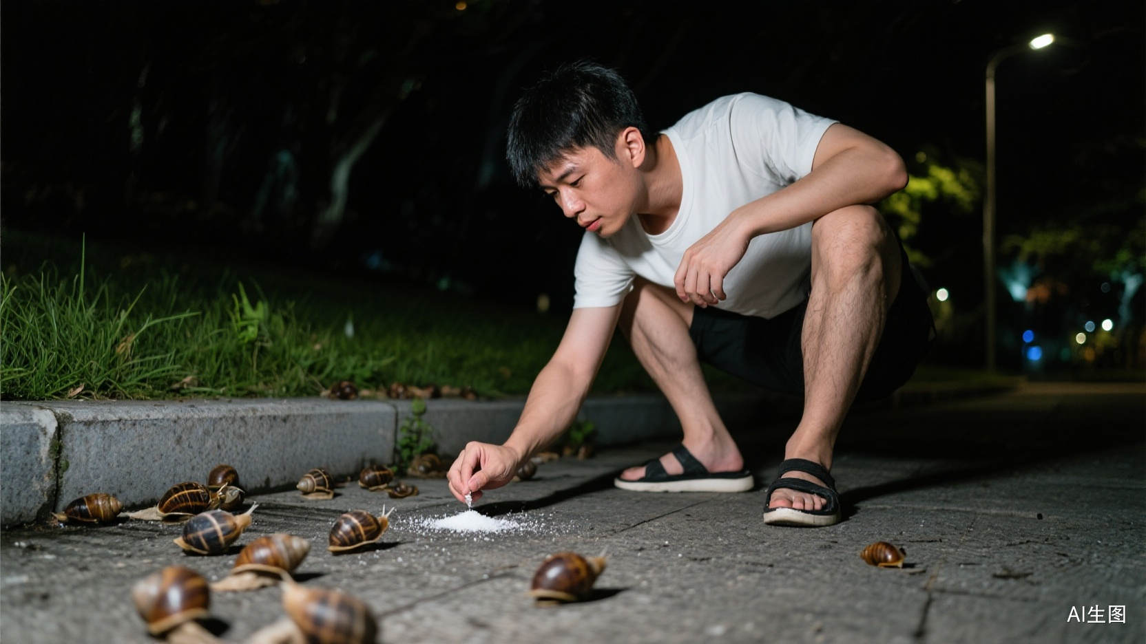 这招虽险胜,但也是杀敌一千自损八百,每次阿辉当完“盐魔王”,就会生理性恶心相当长一段时间,丧失了食欲和其他七情五欲。而那些蜗牛,总有世世代代卷土重来的机会。