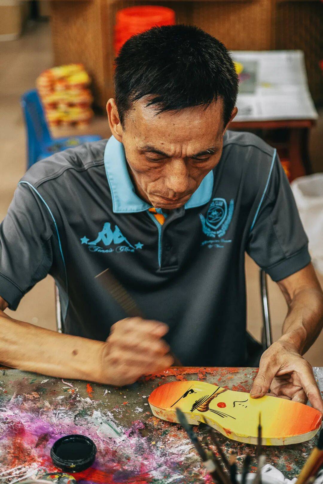 东莞石龙,手艺人正在雕刻木屐。摄影/吴学文