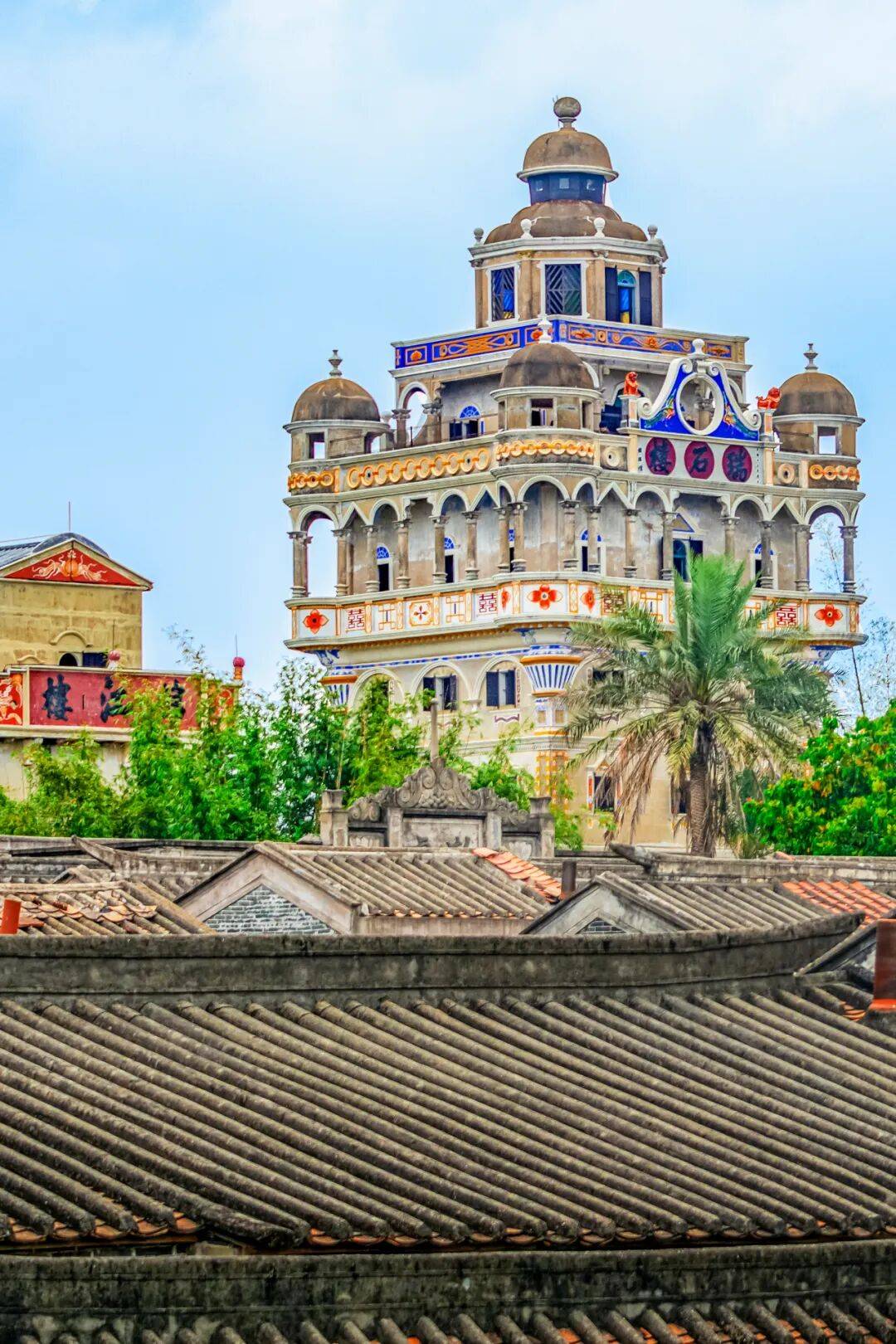 江门开平锦江里碉楼群,风格中西合璧。摄影/陈彦