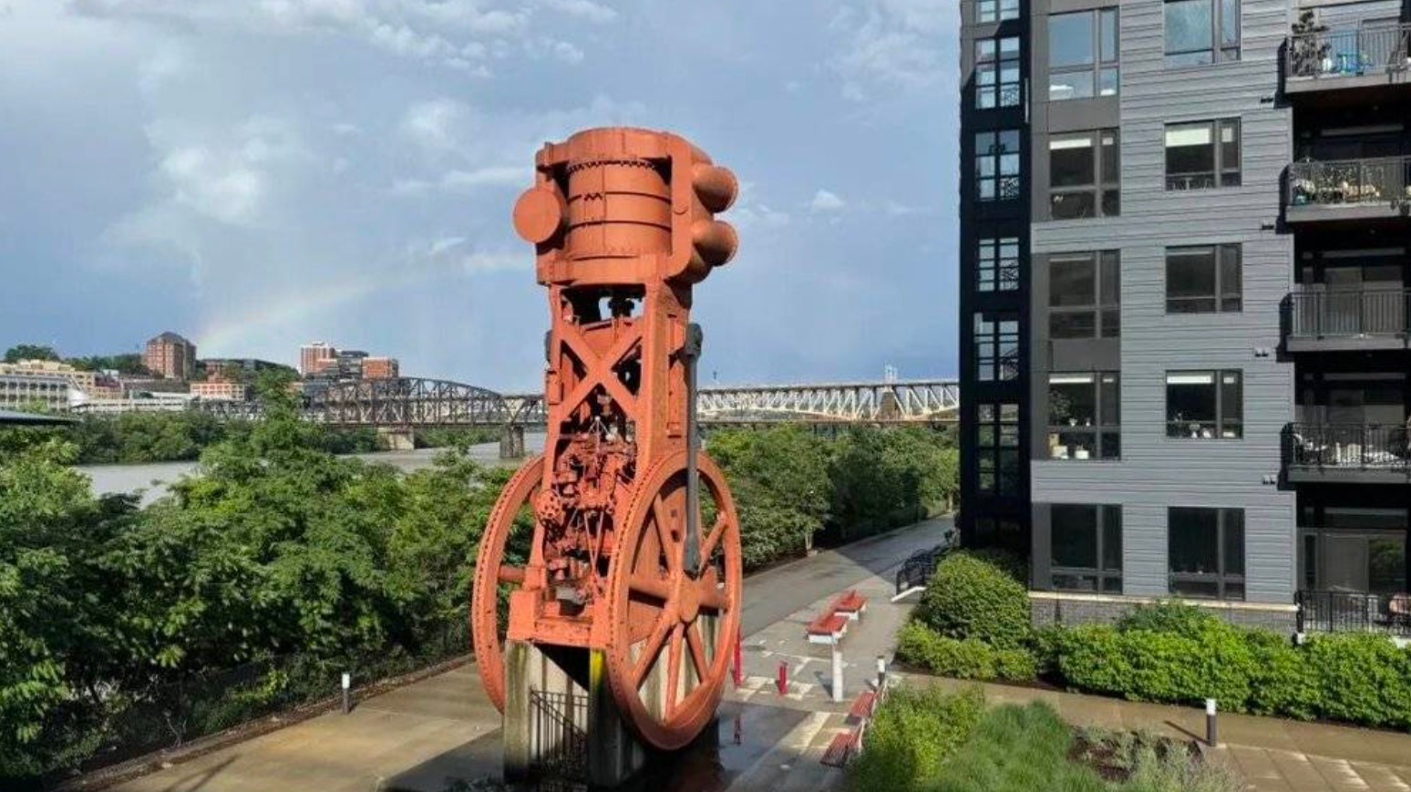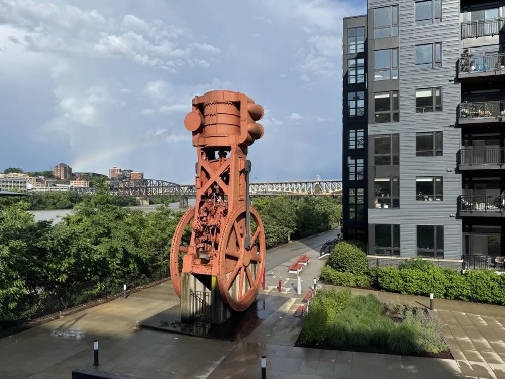 晚饭地点是在匹茨堡百年历史的老火车站,入口处有一个带轮子的庞然大物,拍照查了AI 才知道,这是一个鼓风机,是当年钢厂炼钢炉的标配,现在成为了遗址,也是钢铁之城没落的注脚。