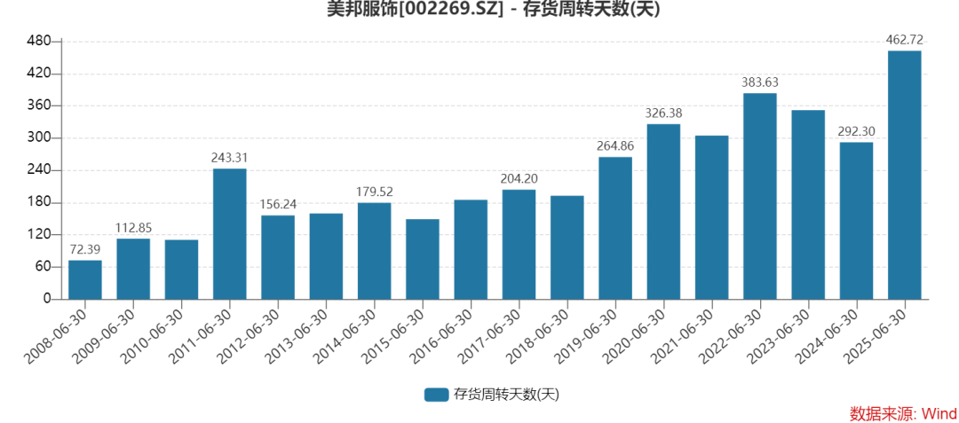 如今,美邦上半年的存货周转天数高达462天,超一年的时间,与其他品牌相比,更加“卖不动”了。