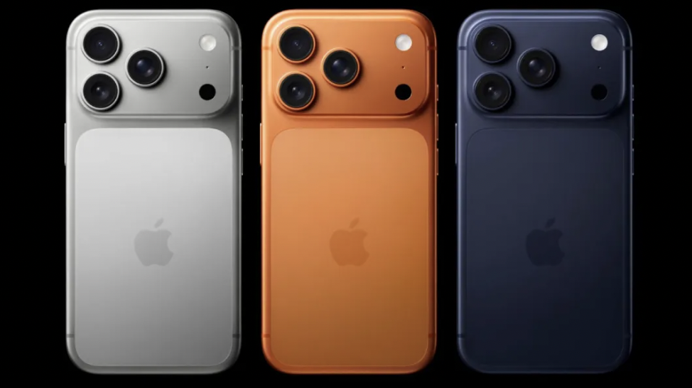 iPhone 17 Pro系列这次背部镜头模组设计大改,有银色、深蓝色、橙色三款配色,采用铝金属机身,其背板是与iPhone Air一致的超瓷晶面板,抗裂能力达4倍。