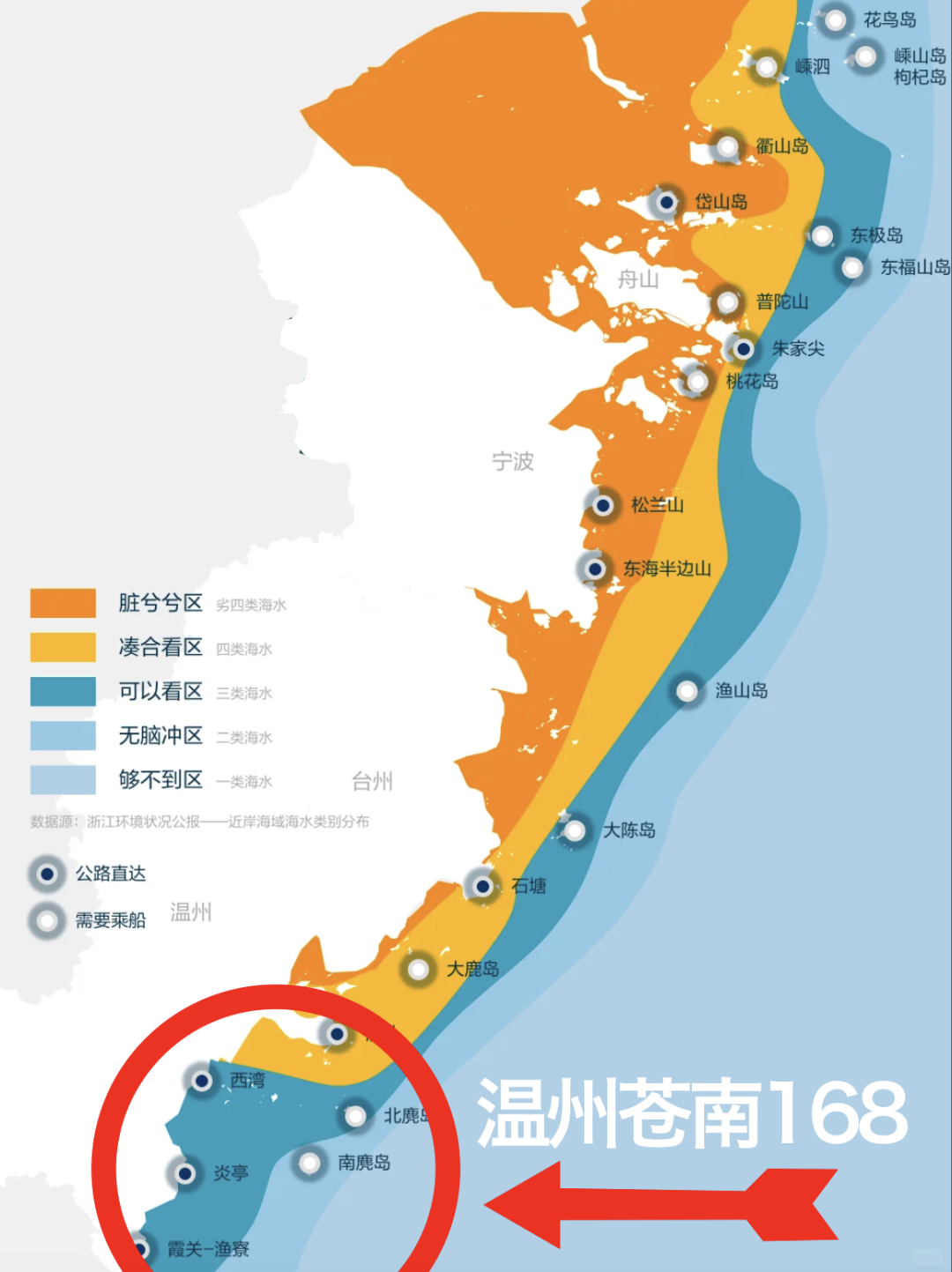 让大苍南自豪的是,在浙江沿海的水质带中,苍南的近岸几乎全蓝,很多人其实没来过,但来过的人都有此惊呼。(尤其在晴天,在168上基本上没有滤镜什么事)