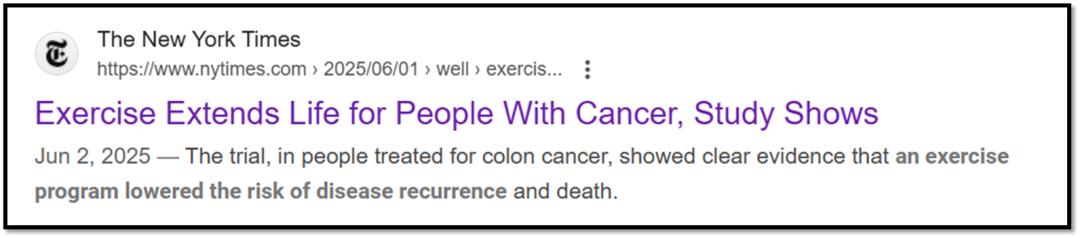 彼时,《纽约时报》也对那项研究做过深入报道“研究显示运动延长癌症患者生命”: