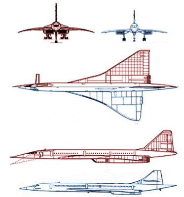相比之下,自中苏分裂后,苏联人并无需要频繁跨越漫长距离往返的友邦,其自身中亚-远东地区的发展程度则不足以支撑“协和”(蓝色)式超声速客机的运营成本。图-144(红色)是纯粹的面子工程,这注定了其客运上的失败。