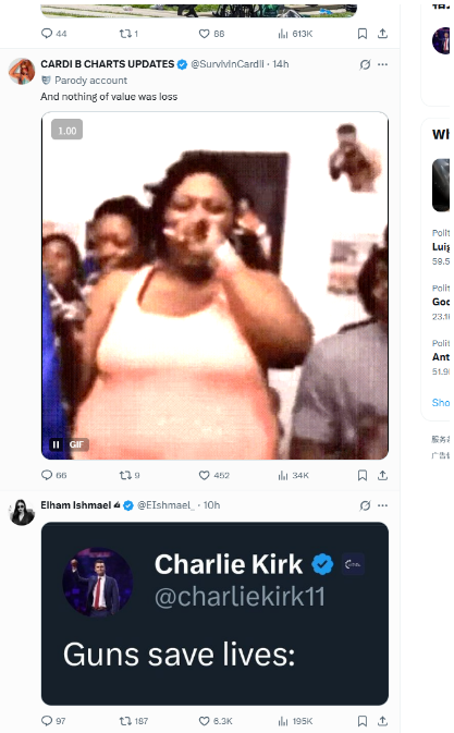 与两党排面人物试图维持虚假的体面不同,不同意识形态者在社交媒体上对柯克死亡的态度已经公开分裂。笔者认为这是政治极化进入到下一阶段的标志性事件。